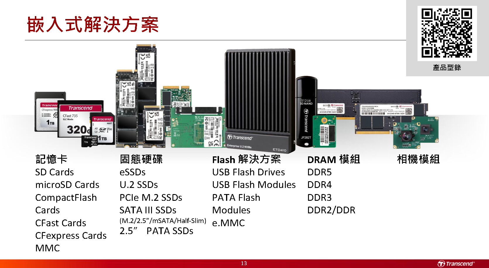 在工业与嵌入式应用领域,创见新推出多款高耐用、高稳定性的储存产品,包含企业级固态硬盘、支持高带宽应用的工业级DDR5-6400内存模组,以及采用218层3D NAND Flash技术的固态硬盘与记忆卡,针对边缘运算与影像储存需求设计的8TB大容量固态硬盘,适用于AIoT、智能制造、医疗设备等需要高速数据存取与长期运作的专业应用。